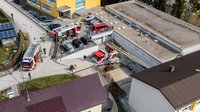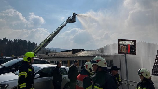 Die FF Altenschlag übernahm die Rettung der Kinder der ersten Klassen und stellte zusätzlich eine Zubringerleitung über den hinteren, steilen Schulweg her, um die Wasserversorgung sicherzustellen.